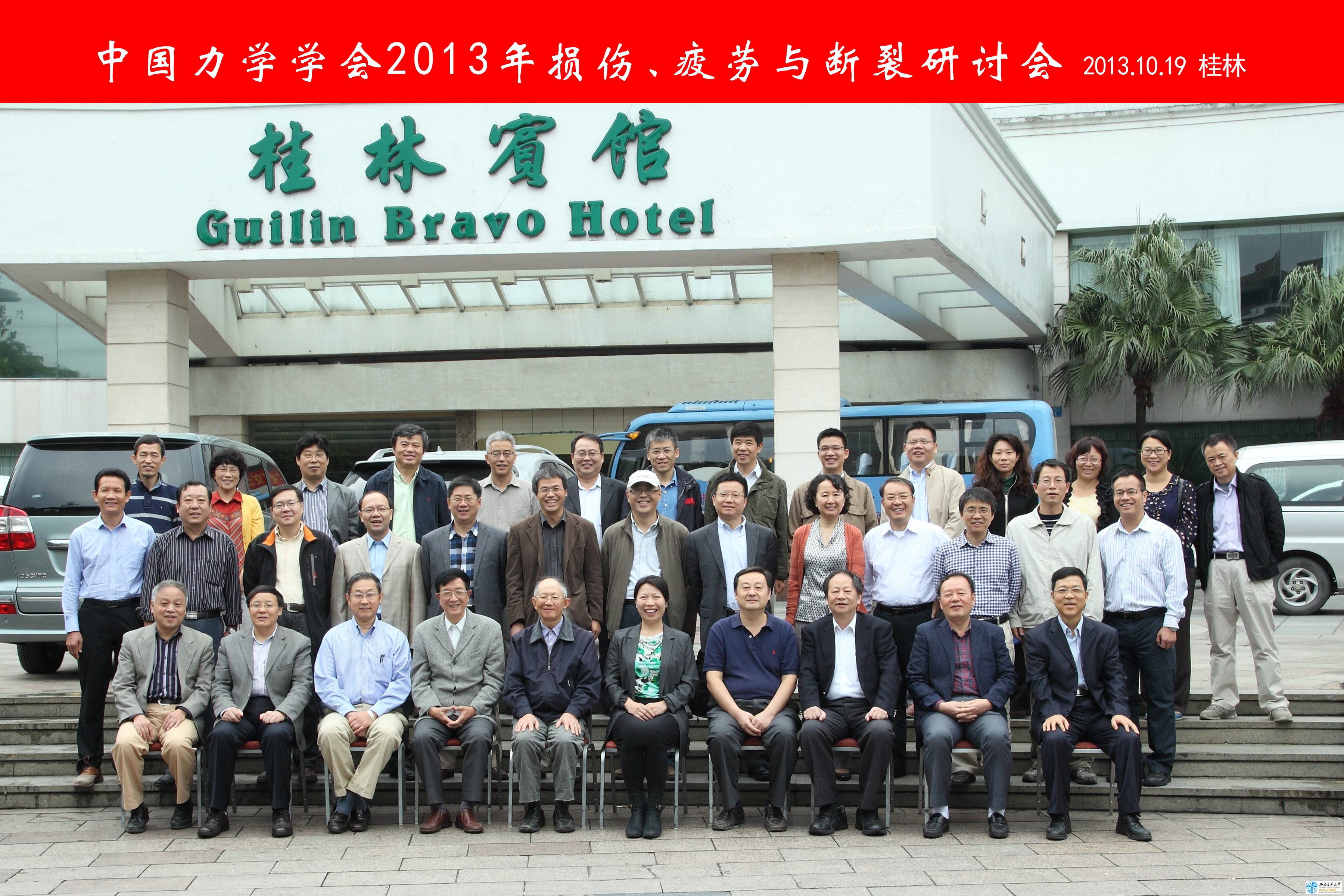 由中国力学学会固体力学专业委员会和实验力学专业委员会共同主办,广西大学和华南理工大学承办的“2013年疲劳、损伤与断裂研讨会”于20131018-21日在广西桂林召开,来自全国各地院校和研究院所的40名代表参加了本次研讨会,黄培彦教授和张克实教授共同担任会议主席。开幕式上,广西大学副校长商娜红教授代表承办方致欢迎词,中国力学学会洪友士副理事长代表中国力学学会致贺词。 本次研讨会的主要议题为:(1)疲劳、损伤与断裂研究现状分析;(2)疲劳、损伤与断裂的学术前沿问题;(3)疲劳、损伤和断裂研究与国家重大需求的关系。会议分三个阶段进行,即综述性邀请报告、专题邀请报告、以及自由发言和讨论。代表们的邀请报告所涉及范围涵盖了固体材料损伤的细观物理基础、损伤破坏的实验方法、切口对构件疲劳的影响、金属塑性与疲劳的细观分析方法、金属疲劳的新机理和新理论、复合材料结构分层破坏与多向疲劳、循环载荷下多晶材料裂尖行为的离散位错动力学模拟、电磁固体的断裂、沥青混合料断裂、裂尖区域的非均匀铁弹畴变、表面效应与纳米尺度力学行为、固体材料破坏研究的发展回顾和展望等方面。