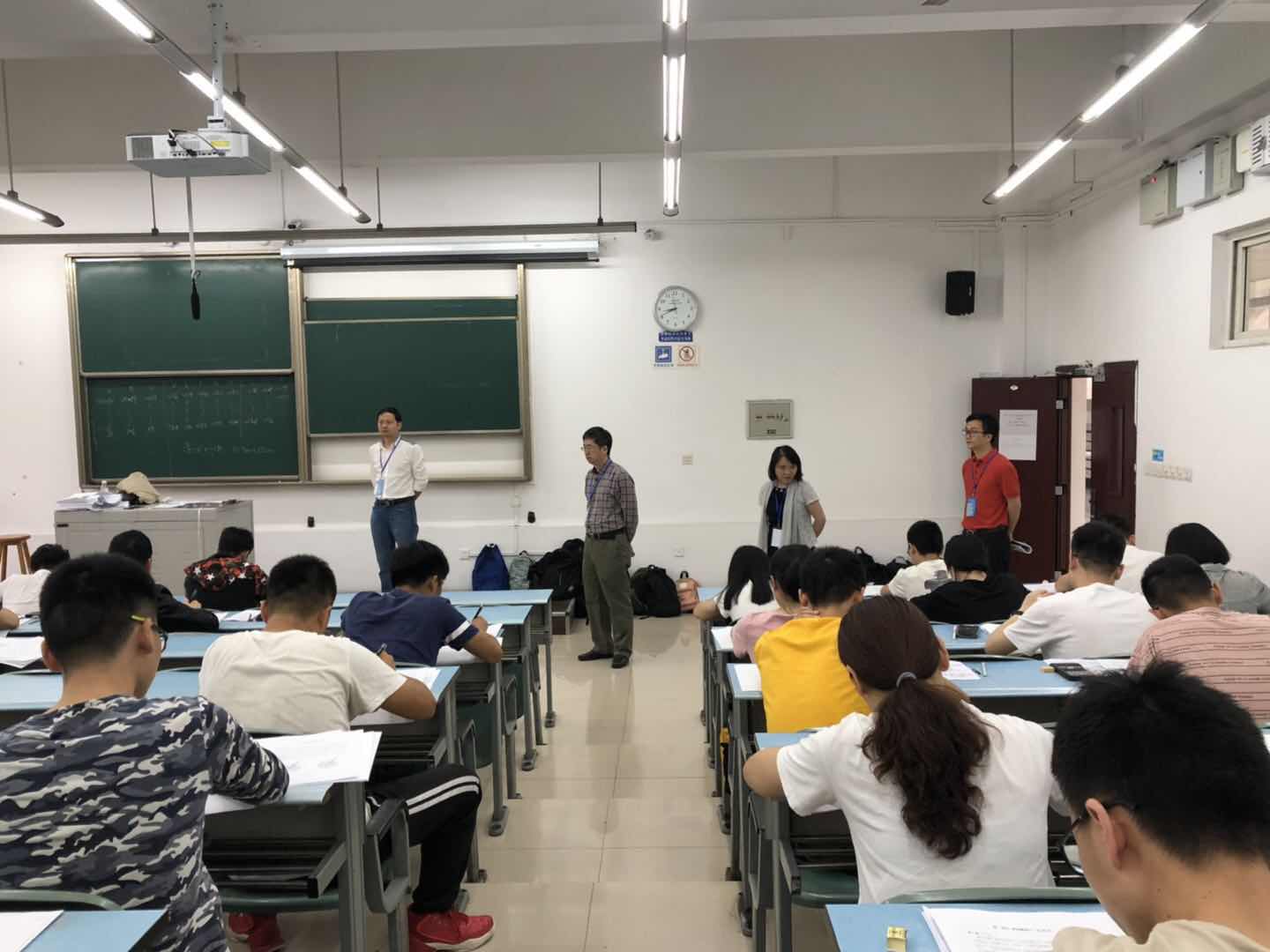 四川省力学学会理事长、365英国上市公司官网力学与工程学院院长康国政教授、365英国上市公司官网力学与工程学院党委书记栗民、副书记孔祥彬和副院长阚前华一起巡视了考场