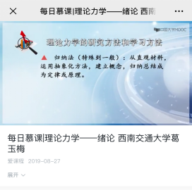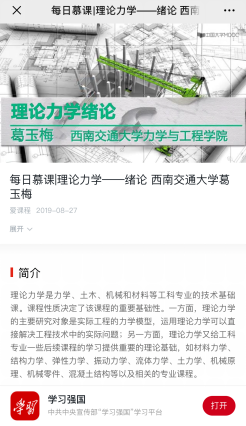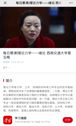 8月27日,由力学学院葛玉梅教授主讲的《理论力学—绪论》在中共中央宣传部“学习强国”平台正式上线。