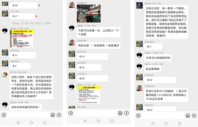 4月19日晚,中国科学院、中国工程院“双料”院士、力学拔尖班名誉班主任、君子(虚拟)书院名誉院长沈志云教授做客“努力讲坛”第15期,与力学学院和君子书院师生们开展了一场题为“轮轨天下,超导未来”的云上讲坛。讲坛在君子(虚拟)书院微信群中举行,力学学院副院长李翔宇、党委副书记孔祥彬等近200名师生参加了讲坛,讲坛由2019级力学拔尖班班长周德龙同学主持。