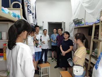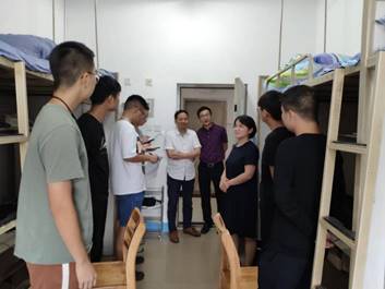 911下午,学院党委书记栗民、党委副书记孔祥彬、副院长阚前华以及2020级新生辅导员刘科宏、周子涵、黄冠翔、2020级班导生走进新生寝室,看望了2020级的新生。老师们详细了解新生的个人情况,强调了在学校、宿舍的安全问题,解答了新生们的疑惑进行,叮嘱同学们进入大学要注意安全、努力学习、与同学友好相处、互帮互助,养成独立的好习惯,在交大力学学院收获充实、美好的学习生活。