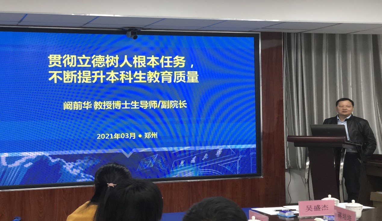 紧接着,阚前华副院长以《贯彻立德树人根本任务,不断提升本科生教育质量》和《强化创新精神和创新能力的培养,提升力学学科研究生培养质量》为题分别介绍了我院本科生和研究生教育教学情况以及存在的问题。