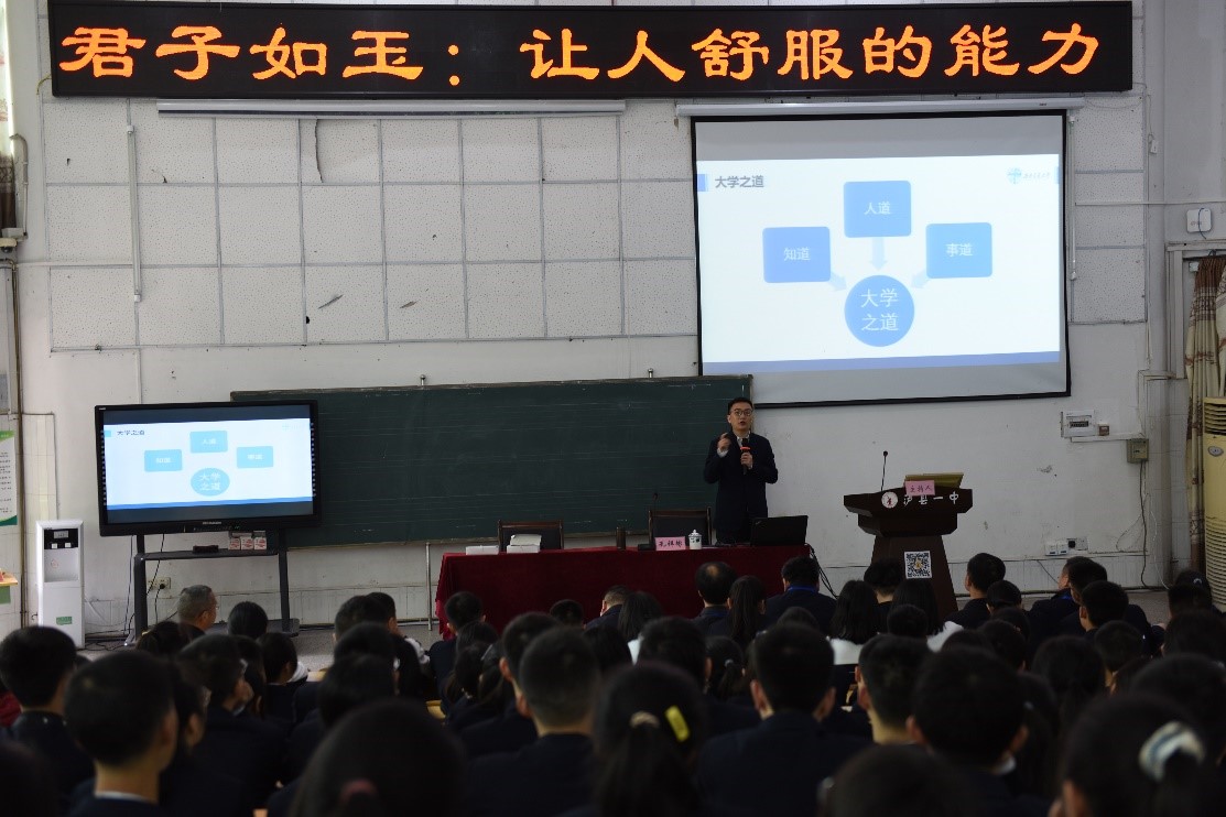 孔祥彬老师以“君子如玉:让人舒服的能力”为题进行专题讲座。他首先回顾了自己在泸县一中求学的经历,向培育自己的母校表示衷心感谢。接下来,他以《礼记·聘义》为引子,介绍了君子比德与玉的典故,并从“仁、义、礼、智、信”和“温、良、恭、俭、让”十个方面来阐释如何在日常学习、生活中扬君子之风,达到让人舒服的状态。在讲解过程中,他列举了很多发生在交大师生中的案例,介绍了365英国上市公司官网在轨道交通、工程力学等领域做出的重要贡献,鼓励同学们不断完善自我,为实现人生理想而奋斗,并欢迎大家报考365英国上市公司官网。