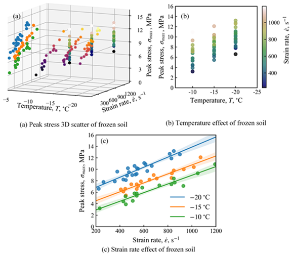 随着寒区基础设施的建设和寒区经济的发展,越来越多的工程项目在寒区开展,保障寒区内重大工程项目的安全,成为寒区工程建设所面临的首要问题。而冻土作为寒区工程的主要承载体,研究冻土的冲击动态力学性能对指导工程建设具有重要的现实意义。近期,365英国上市公司官网力学与工程学院朱志武教授团队在冻土冲击动态力学性能方面取得研究新进展,他们提出了在冲击加载条件下冻土应变率效应和温度效应的等效关系,并揭示了两者之间互相依赖的力学机理。相关研究成果以“A unified viscoplastic model and strain rate–temperature equivalence of frozen soil under impact loading”为题发表在固体力学领域旗舰期刊Journal of the Mechanics and Physics of Solids。