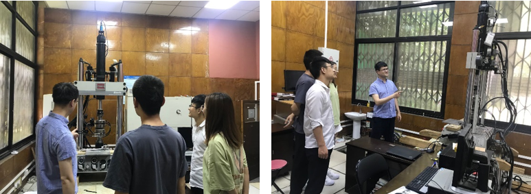刘宇杰副教授向研究生介绍MTS液压伺服试验机和MTS电磁试验机
