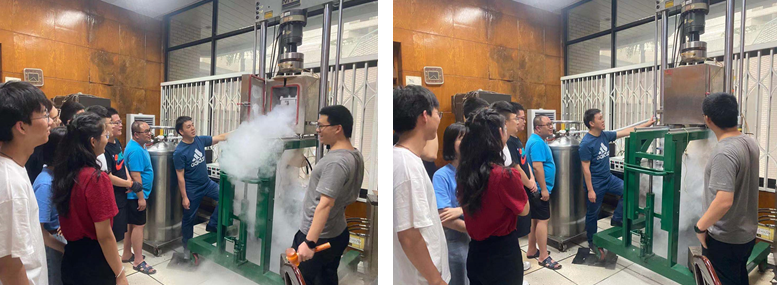 强度与振动实验室也接受了同学们参观、实验的申请。6月9日,力学与工程学院的研究生在刘宇杰副教授的带领下,参观了强度与振动实验室,刘老师给研究生讲解MTS液压伺服试验机和MTS电磁试验机的特点、功能及使用要点,并开展了演示试验,让同学们直观感受试验机的运行和使用。6月10日,包陈副教授为研究生讲解了核压力容器钢的低温(零下110℃)止裂韧性试验,并开展了相关实验。