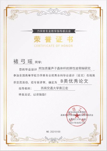 教育部高等学校力学类专业教学指导委员于2021年5月发起第二届全国高等力学类专业优秀本科毕业设计(论文)在线展示交流活动,论文提交采用限额制。本次活动共有146篇符合要求的论文参评,经力学类专业指导委员会评审决定,最终评出A类优秀论文42篇,B类优秀论文70篇。
