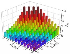 所提出的数值方法能够有效地表征聚合物复合材料的微结构,数值模拟与实验数据吻合良好。通过系统地数值模拟发展了一个预测等效热导率的唯像模型,模型预测结果与本文的实验结果和已有文献中的实验结果吻合良好(见图2)。