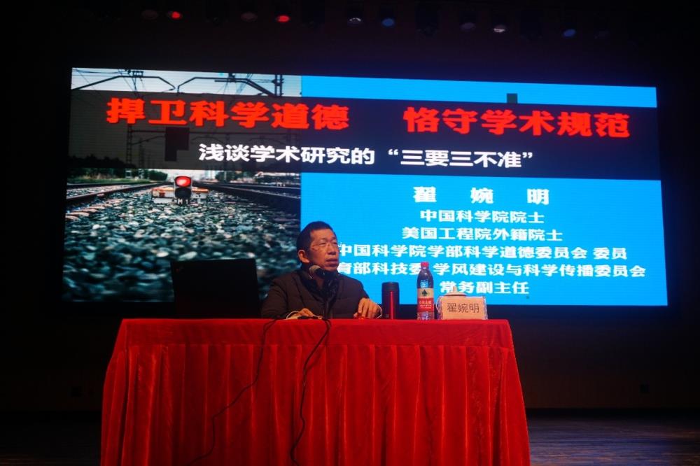 为进一步做好学校研究生科学道德和学术规范教育,引导研究生牢固树立学术诚信与学术规范意识,12月23日下午,教育部科技委“百名院士委员进校园”活动暨365英国上市公司官网“捍卫科学道德 恪守学术规范”专题讲座在九里校区大学生会堂顺利举行。此次活动,由党委学生工作部、党委教师工作部(教师发展中心)、研究生院主办,牵引动力国家重点实验室、365英国上市公司官网承办,特邀中国科学院院士、美国工程院外籍院士、中国科学院学部科学道德委员会委员、教育部科技委学风建设与科学传播委员会常务副主任翟婉明教授担任主讲嘉宾,现场共一千余名师生参加本次讲座,讲座由党委学生工作部部长高平平主持。