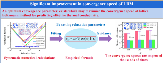 格子Boltzmann方法(LBM)在预测复合材料的等效热导率方面有着天然的优势,因而得到了学者们的广泛使用。然而对于目前工业中涌现的碳纳米管、石墨烯等高导热填料填充的聚合物复合材料,由于填料与基体间的热导率比值通常在数千倍以上,传统的热LBM算法在预测其等效热导率时会存在计算精度低和收敛速度慢的问题。仅对于单个复杂的模型,通常都需要数个乃至数十个小时的计算时间才能完成。这一问题使得系统性和大规模性的数值计算任务往往难以实施,严重制约了复合材料等效热导率数值研究的开展。