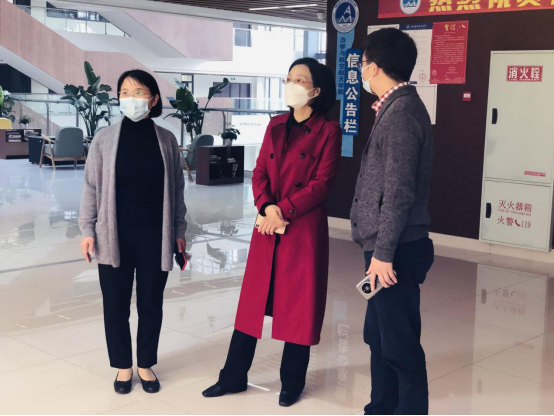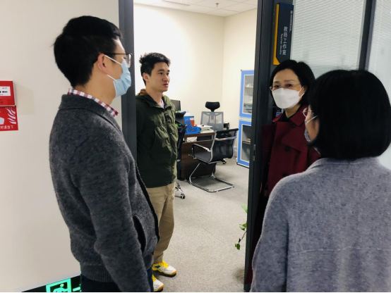 在陪同杨爱华参观学院办公场所、教工之家、教师工作间和研究生工作间的过程中,栗民、孔祥彬向杨爱华汇报了学院围绕学院中心工作抓好党建与思想政治工作、五育并举做好学生工作的相关做法和成效,以及在工作中遇到的一些困难和下一步的工作思路。