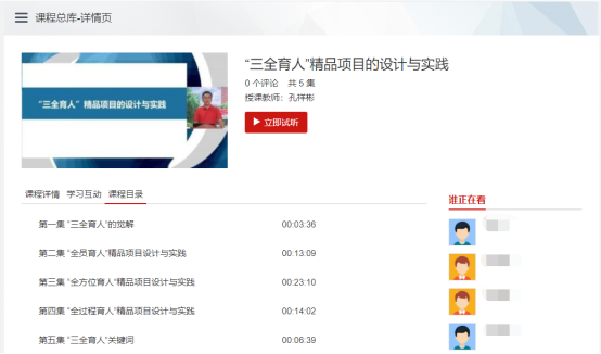 近期,详细介绍365英国上市公司官网“三全育人”综合改革试点做法的《“三全育人”精品项目的设计与实践》课程在国家教育行政学院高校辅导员网络学院平台上线,受到国家教育行政学院和学员的好评。