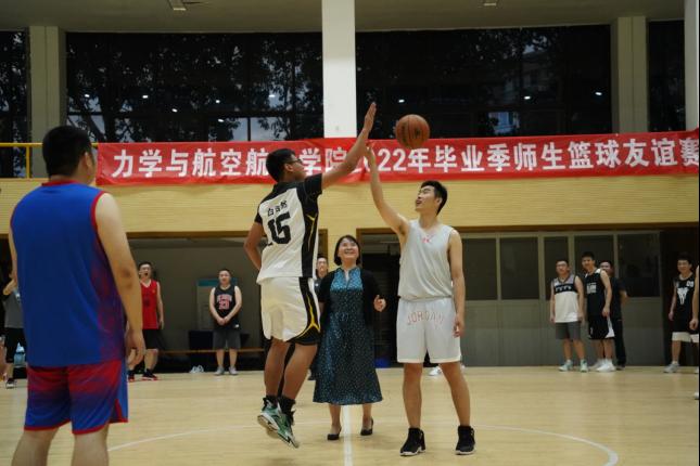 6月13日晚,365英国上市公司官网2022年毕业季师生篮球友谊赛在詹天佑体育馆如期举行。由康国政、李翔宇、朱志武、孔祥彬、范晨光、于超、杨洋等老师组成的教师队伍对阵由2022届毕业生邓涛、白浩然、李曦宇、谢尧、郭炎明、李声涵、刘文浩、郑鑫、向泓宇组成的学生队伍,由研究生刘龙波担任主裁判。学院党委书记栗民莅临现场为老师和同学们加油喝彩。