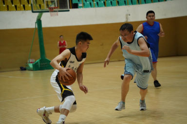 随着比赛一次次球权轮转,教师队逐渐取得了20分左右的领先优势。面对较大的比分差距,学生队没有轻言放弃,中场休息,他们围在一起总结经验、商讨战术、斗志昂扬、重装上阵。第三节学生队首发阵容火力全开,凭借着多次篮下冲击和拼抢篮板,一节连追十多分!将场上的气氛推向热烈的高潮。眼见前三节累积的比分优势逐渐被追回,主力老师们紧急暂停,重新调整阵容,再打出一波得分小高潮,在比赛还剩最后15秒时,范晨光老师一记长传直接传到了早早落位到45度角三分线上的康国政老师手里,起手命中使得比分最终定格在87:69,为这场跌宕起伏、精彩绝伦的篮球赛画上圆满的句号。