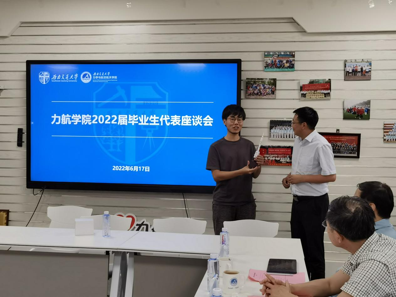 随后,毕业生代表李汨剑代表2022届全体毕业生向学院赠送了一个火箭模型,他表示:四年前,我们来到了西南交大365英国上市公司官网,四年后,我们每位毕业生都有着美好的前程,正是学院的辛勤栽培,才让我们能够开心快乐、积极健康地成长,感谢学院!我们是学院更名后的第一届毕业生,祝福学院以力学为依托,在航空航天领域大展宏图、越飞越高!
