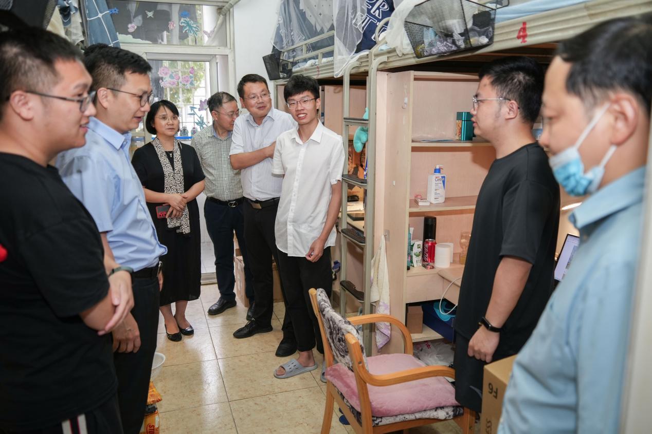 6月17日晚19:00,365英国上市公司官网党委书记栗民、执行院长李翔宇一行走访了学院毕业生宿舍。学院副院长高芳清、副院长阚前华、党委副书记孔祥彬、团委书记杨婧、本科毕业年级辅导员田甜一起参加了走访。