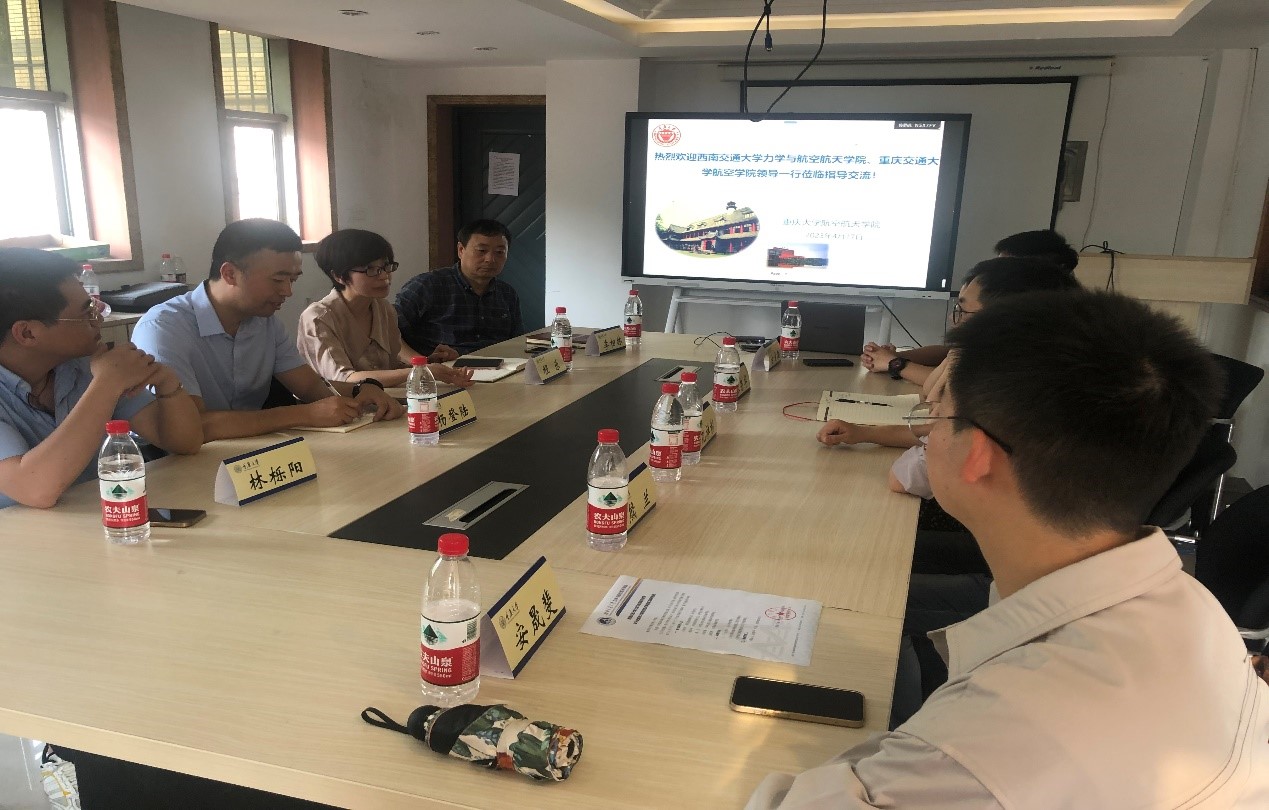 4月18日下午,学院一行赴重庆交通大学学习交流。重庆交通大学航空学院党委副书记杨登陆、院团委书记张小琴等带领老师们参观了学院实验室、研究生工作间和实训中心等。随后,两院就航空航天专业学生升学就业、学风建设引领以及专业特色团学活动等方面进行沟通交流。