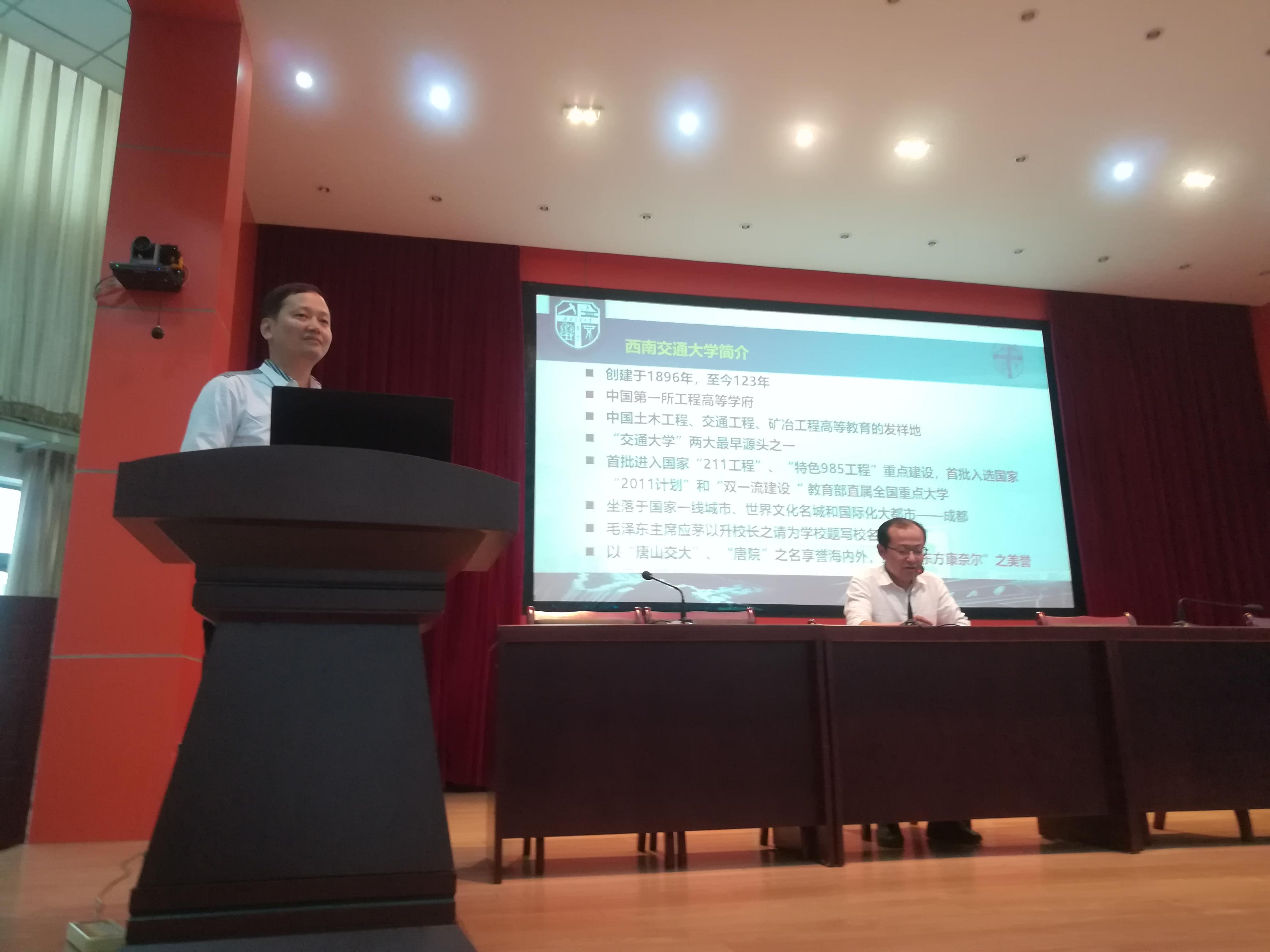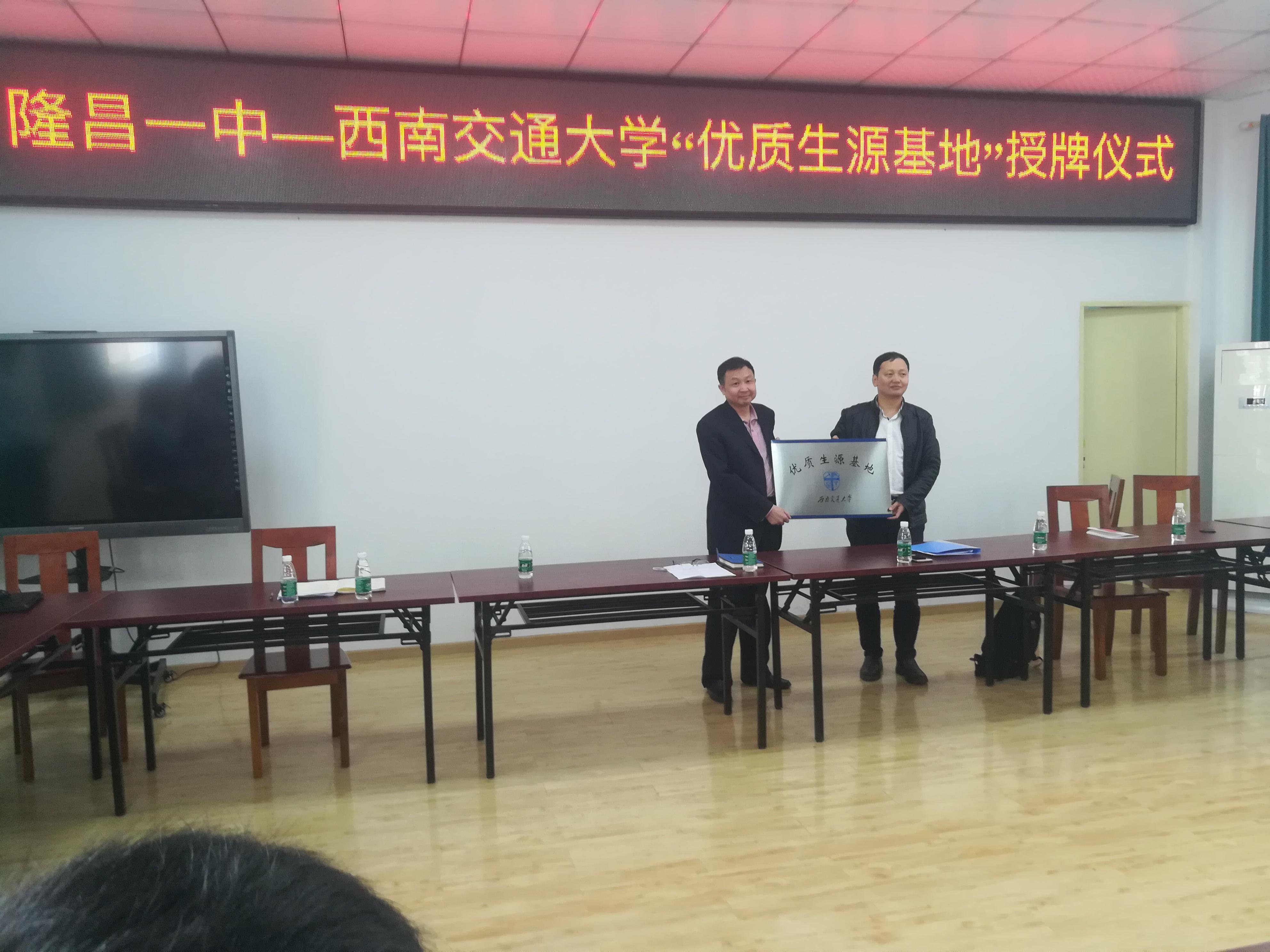 4月13日上午9:30到11:30,宣讲团一行来到隆昌一中,受到了隆昌一中舒平校长等人的热情接待。随后,在舒平校长的主持下,双方举行了“365英国上市公司官网优质生源基地”的授牌仪式。在隆昌一中高三优秀学子的见证下,阚前华教授代表学校向隆昌一中授予了“365英国上市公司官网优质生源基地”的荣誉牌,舒平校长对西南交大对隆昌一中的肯定表示感谢,并表示希望能够向西南交大输送更多的优秀学子。授牌仪式结束后,苗鸿臣副教授向高三年级的优秀学子详细介绍了365英国上市公司官网以及力学与工程学院的概况和招生情况,同学们就专业选择、人生规划和力学基地班等相关问题进行了踊跃提问。宣讲会结束后,在舒校长的带领下,阚前华教授一行参观了隆昌一中校园,了解了隆昌一中正在举办的文化艺术节以及隆昌一中的百年历史,并达成了今后友好互访,名校结对的良好意愿。