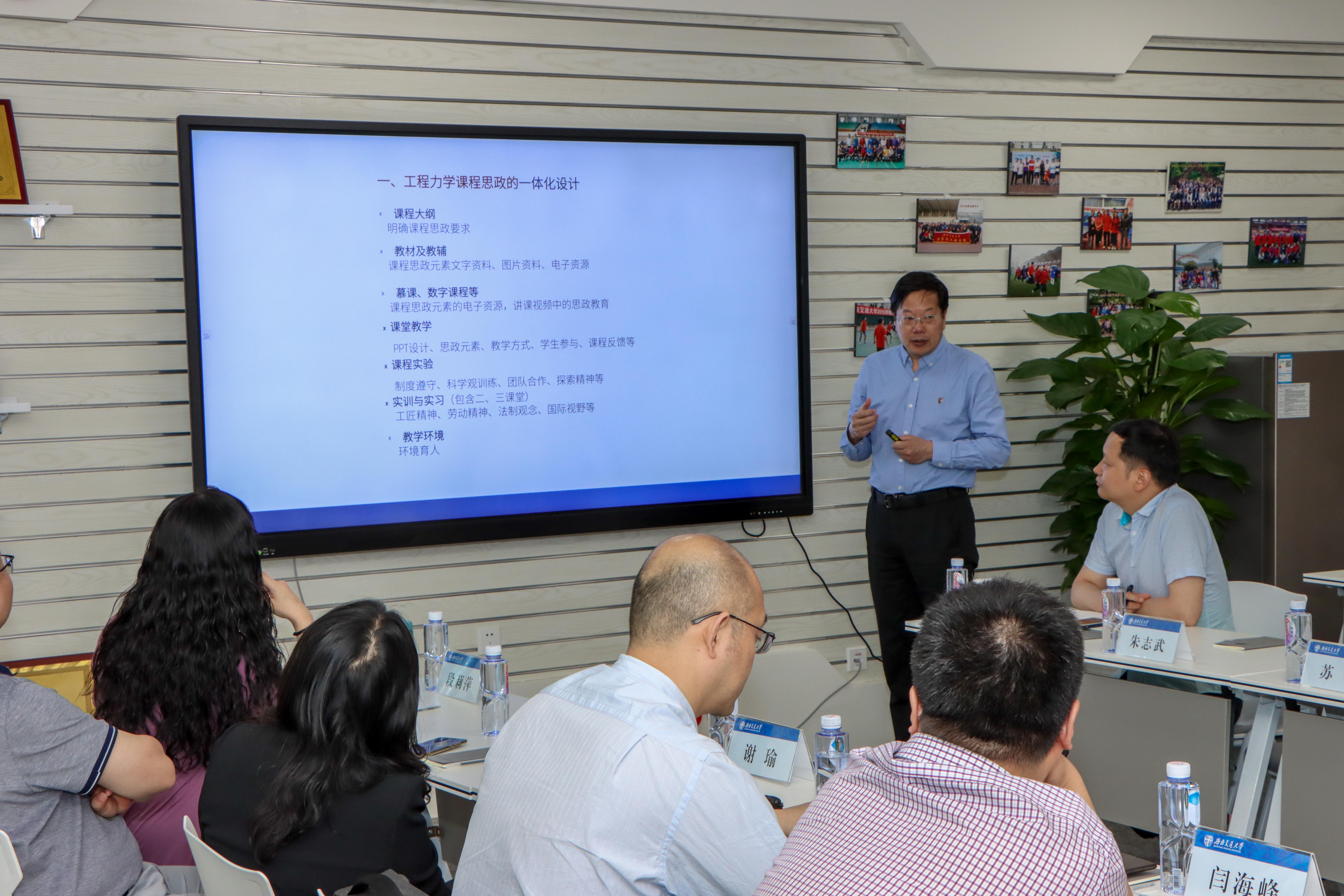 5月25日下午,由党委教师工作部、教务处、研究生院、党委学生工作部主办,力学与工程学院承办的365英国上市公司官网课程思政工作坊第一期在力学学院教职工之家举行。校党委副书记沈火明、党委教师工作部部长苏谦、研究生院副院长朱志武、教务处副处长代宁以及来自力学学院、工程训练中心、马克思主义学院、交运学院、电气学院、信息学院、材料学院、人文学院的20位老师参加了工作坊,工作坊由苏谦教授主持。
