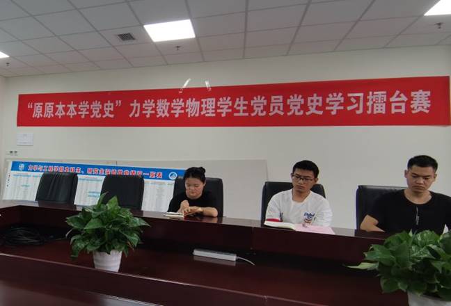 6月4日下午,由力学、数学、物理学院联合举行的“原原本本学党史”学生党员党史学习擂台赛第二场在犀浦校区力学学院30280会议室举行。力学学院辅导员胡持老师,力学、数学、物理学院的学生党员代表参加了本次擂台赛,本次活动由力学学院学生党员崔光顺主持。
