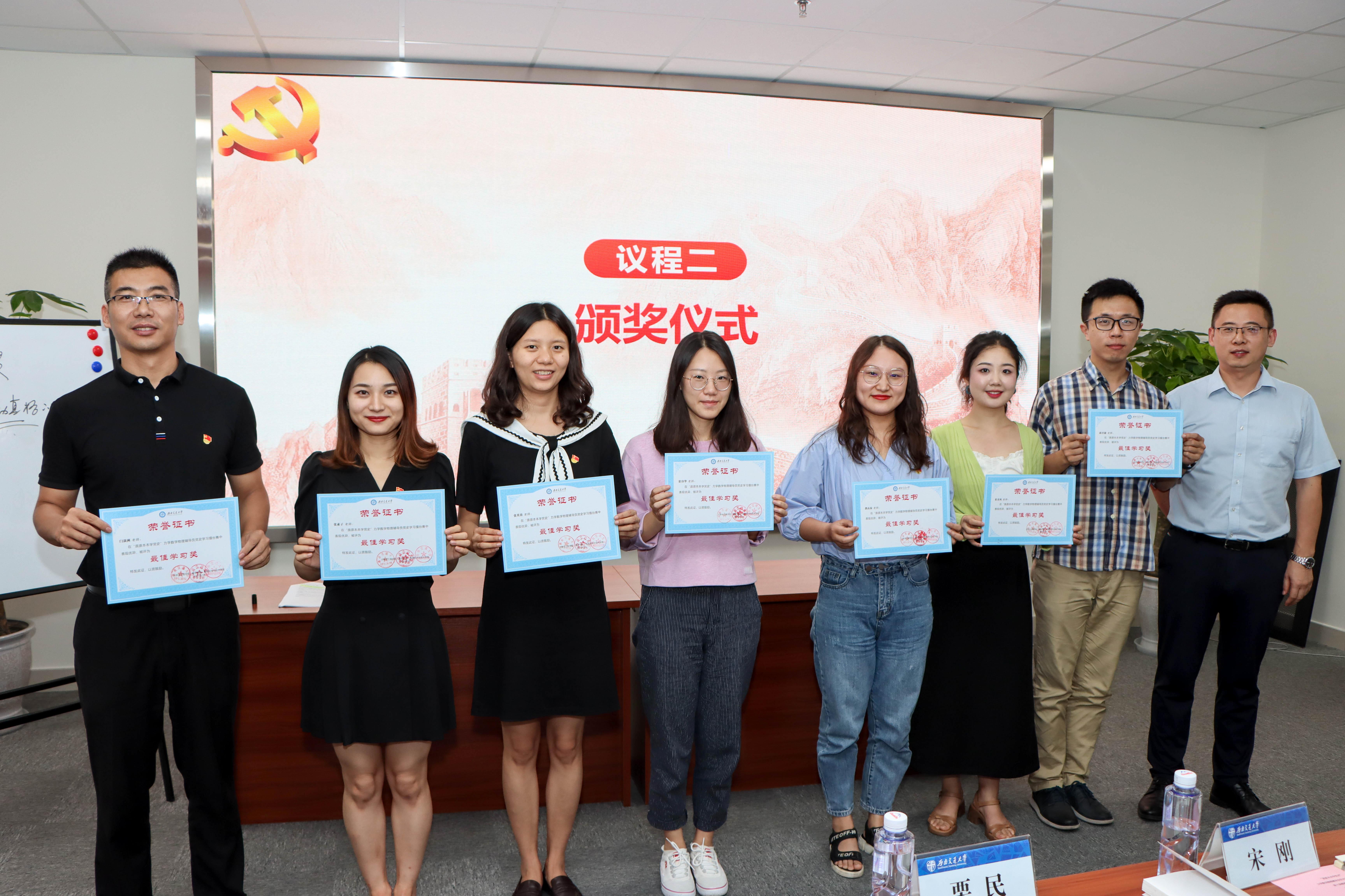 接下来,栗民、宋刚先后为获得“原原本本学党史”辅导员学党史擂台赛优秀报告奖、最佳学习奖的老师们颁奖并合影留念。